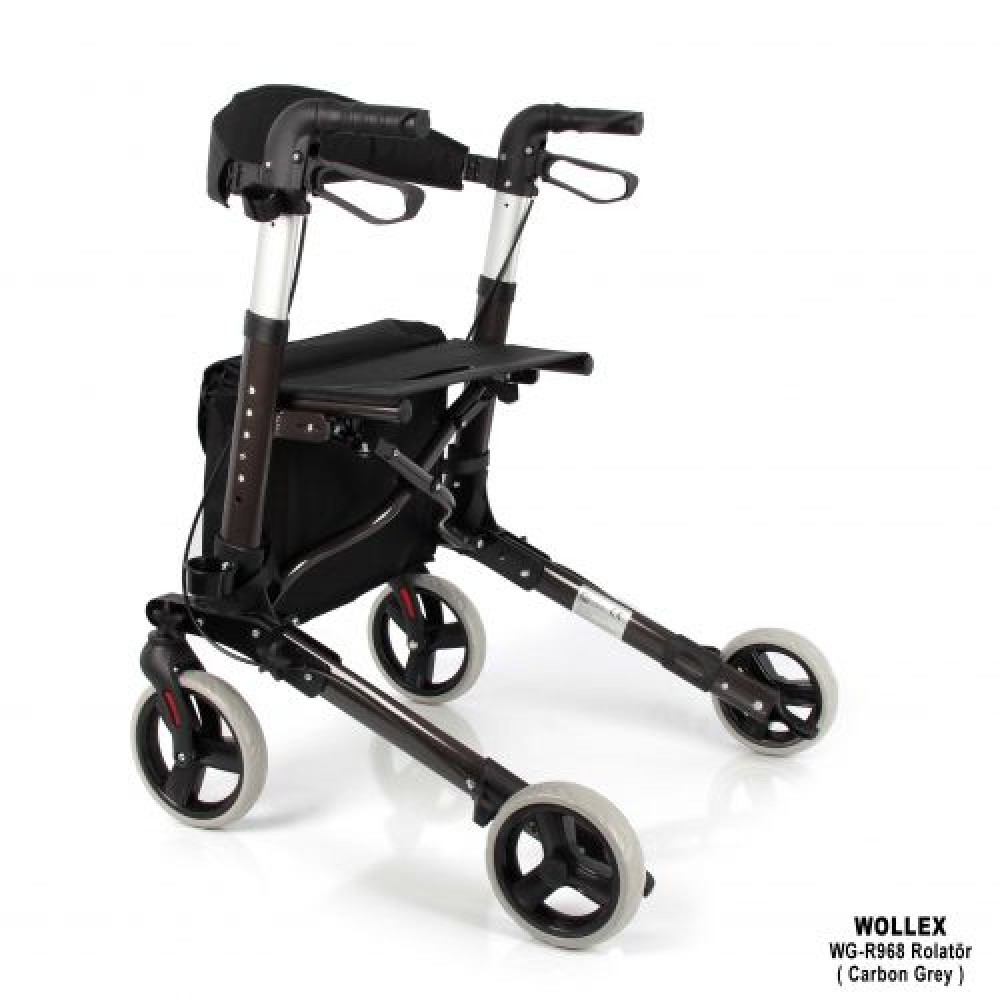 Wollex WG-R968, günlük yaşamda yürürken desteğe ihtiyaç duyan yaşlı bireyler, ameliyat veya hastalık sonrası toparlanma sürecindeki kullanıcılar ve denge problemi yaşayan kişiler için son derece uygun bir rolâtördür. Hem ev içinde dar alanlarda hem de dışarıda parkta, sokakta, markette güvenle kullanılabilir. Kullanıcıya yürürken ekstra destek sağlayarak düşme riskini azaltır ve daha uzun mesafeleri yorulmadan kat etmeye yardımcı olur. Ürünün öne çıkan yönleri arasında hafif gövdesi sayesinde kolay taşınabilmesi, katlanabilir yapısıyla araç bagajına veya dar alanlara rahatça sığması, ve gerektiğinde oturak ile sırtlık sayesinde hemen dinlenme imkânı sunması bulunur. Ayrıca ön taraftaki çanta bölmesi, alışveriş ya da kişisel eşyaları kolayca taşıma olanağı sağlar; ek olarak sunulan baston/şemsiye tutacağı kullanıcıya pratiklik katar. Manevrası kolay tekerlekleri ve güven veren fren sistemi sayesinde hem güvenli hem de konforlu bir kullanım sunarak günlük yaşamı daha bağımsız ve rahat hale getirir.